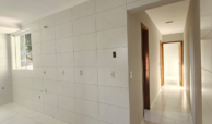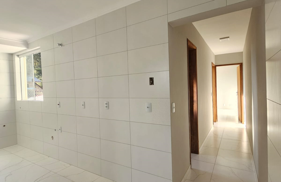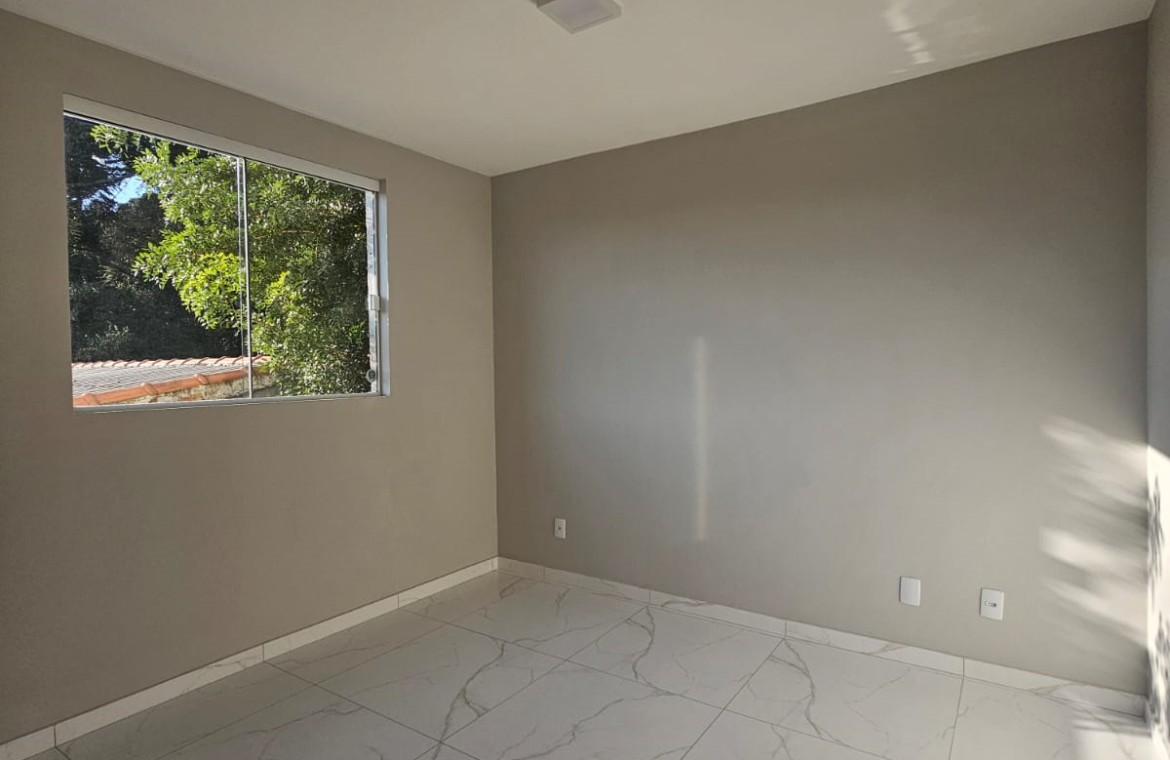 Dois quartos, sala estar/jantar, bwc social, cozinha/área de serviço, uma vaga de estacionamento.